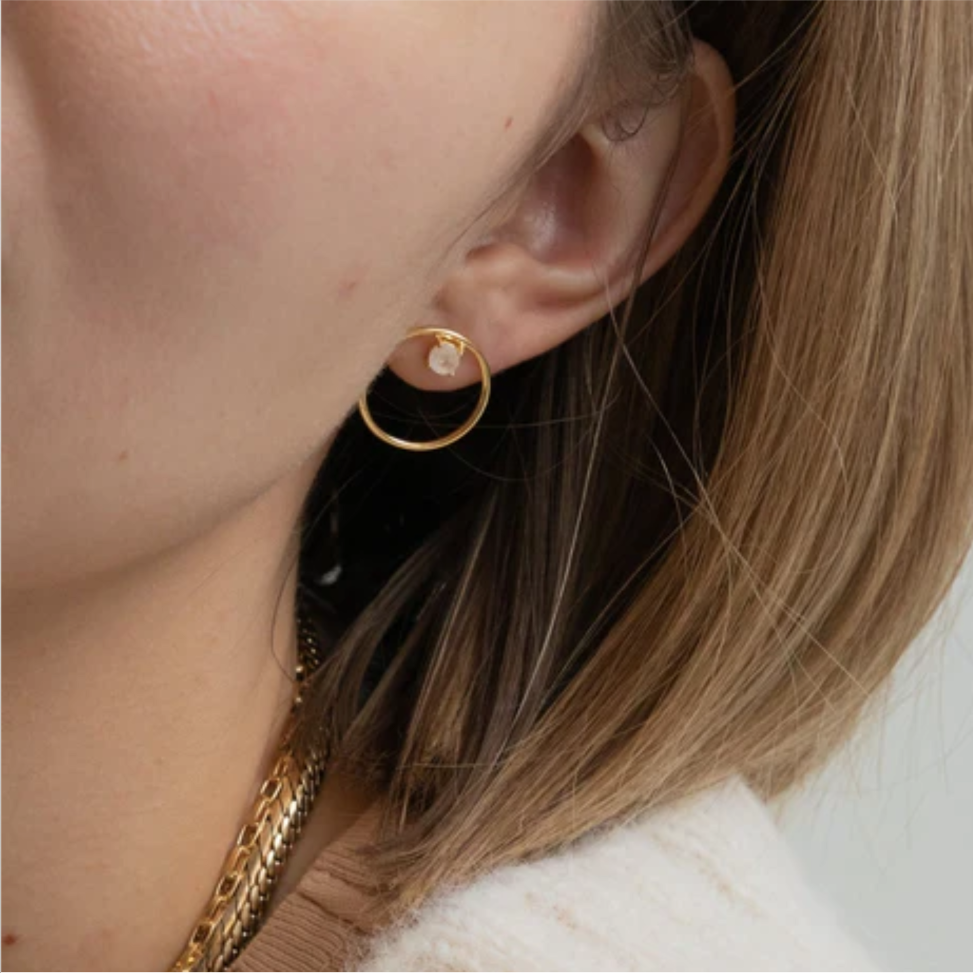 Available in either freshwater pearl, moonstone, or labradorite, the Beech Earrings are set in 14k gold vermeil. Easy to dress up or down depending on your mood.