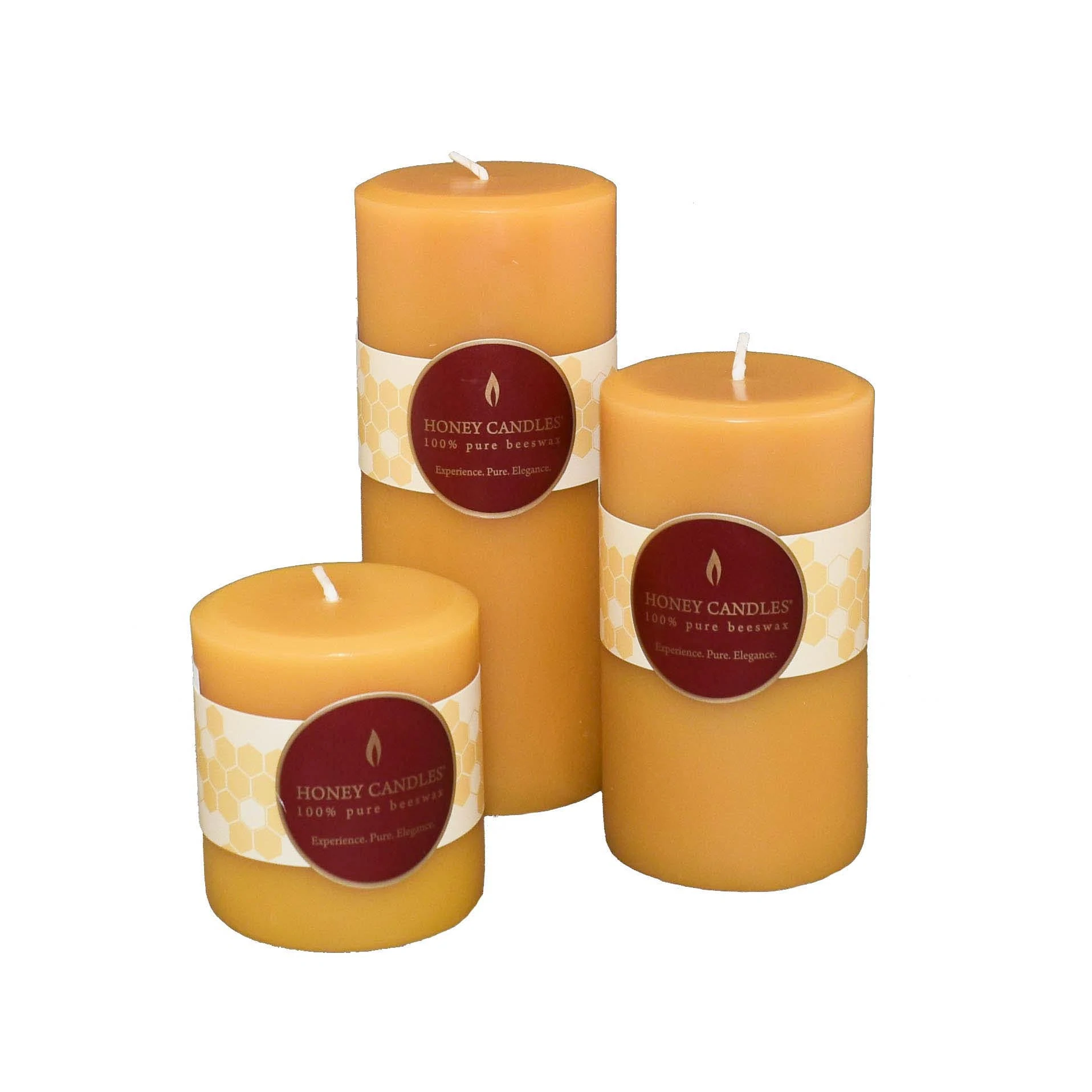 Made by hand in Kaslo, British Colombia from 100% Canadian beeswax, these pillar candles offer a warm and longlasting glow. No added fragrances, just pure and natural beeswax scent!