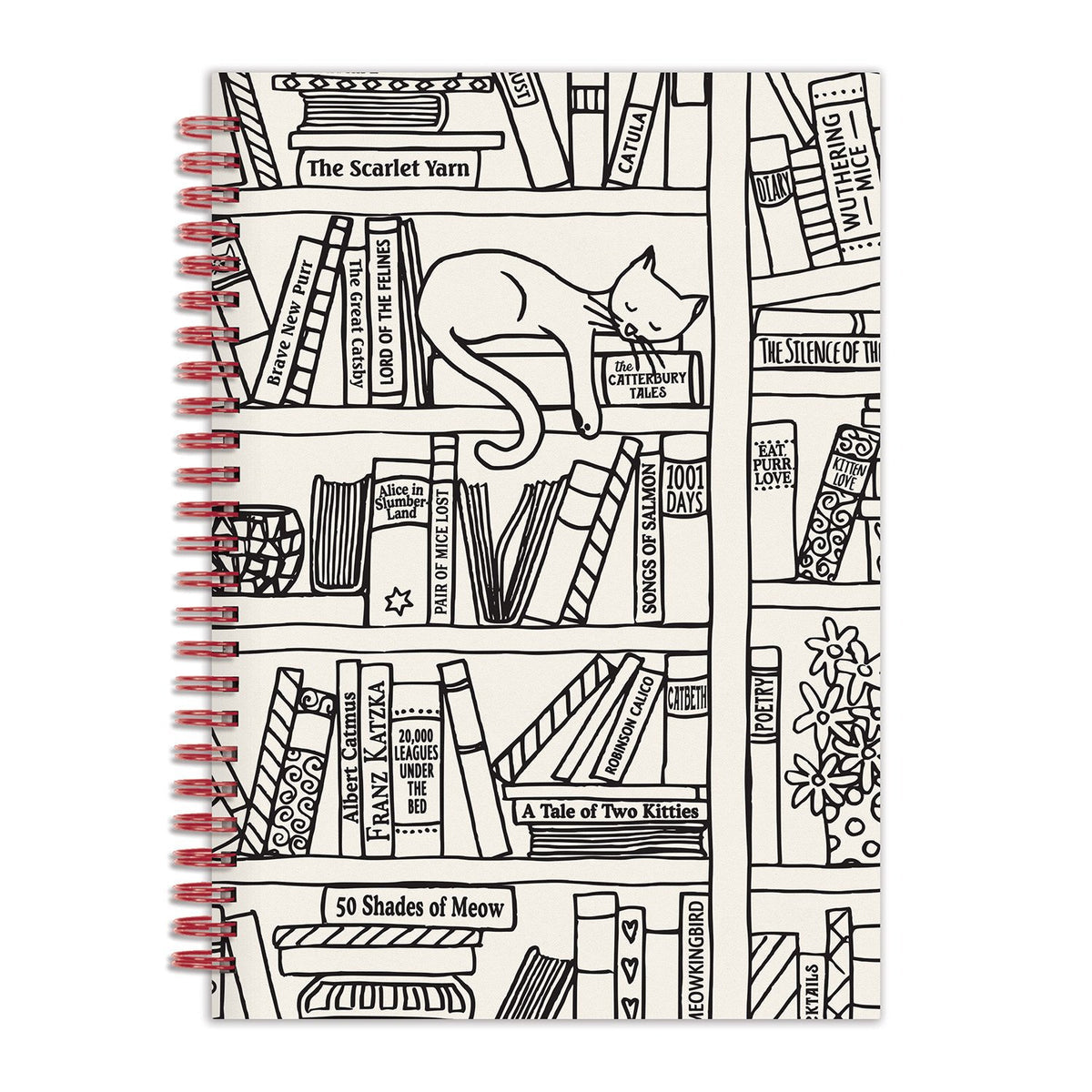 The Cat on Bookshelf 6 x 8" Wire-O Journal from Galison is the perfect companion notebook with lined pages and a large functional spiral binding.