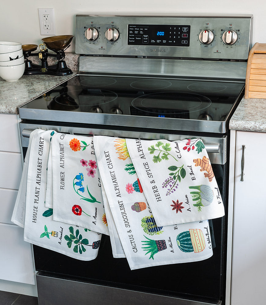Designed by Toronto artist Lily Kao, these 100% cotton tea towels feature charming illustrations — one for each letter of the alphabet.
