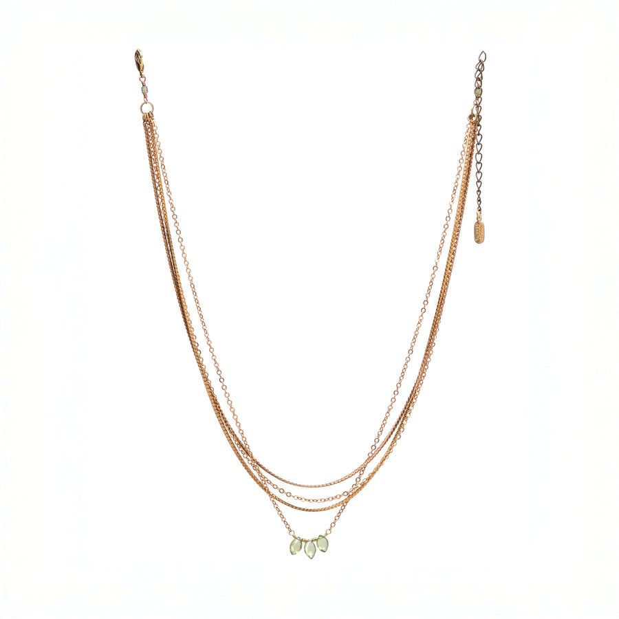 The Cora Necklace features three stones hand wrapped with recycled brass chains. Pretty enough to wear alone, or perfect for layering with Hailey's other pieces.