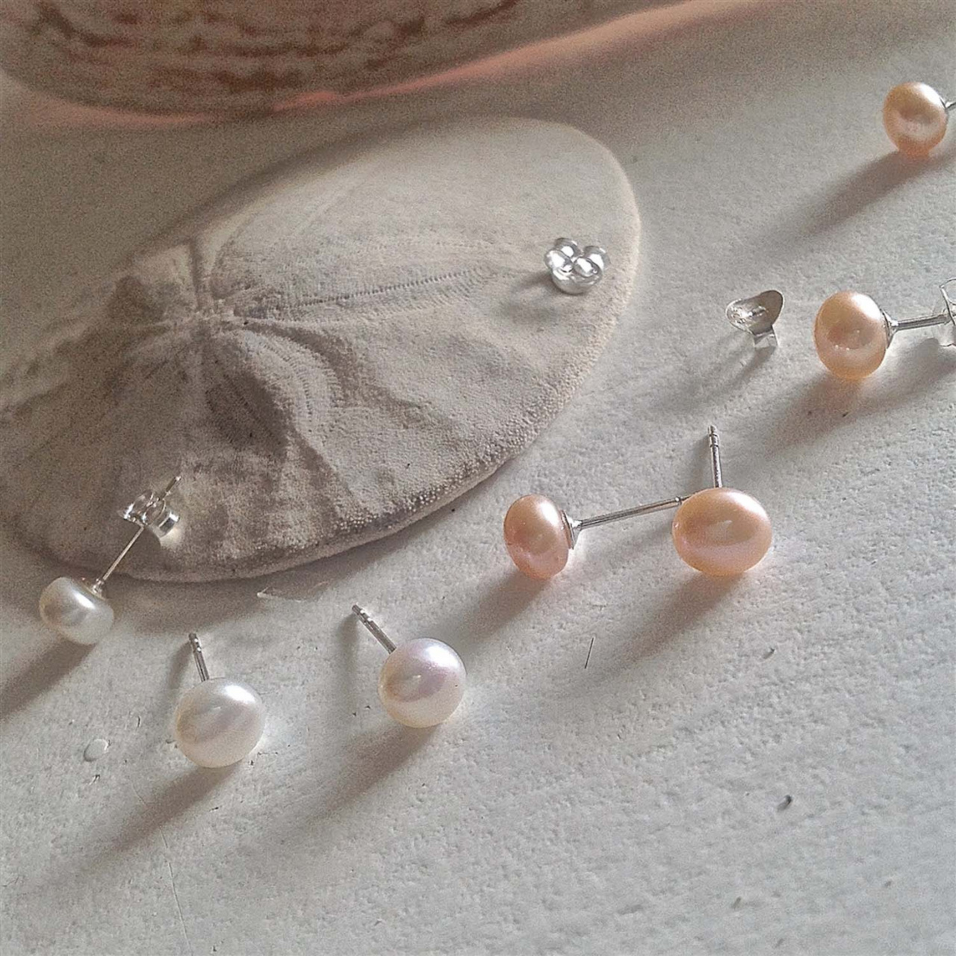 These freshwater pearl stud earrings in a light blush pink or classic white are such an easy choice to complete any outfit. Whether they are worn day to day or only on special occasions, these earrings will be a go to.