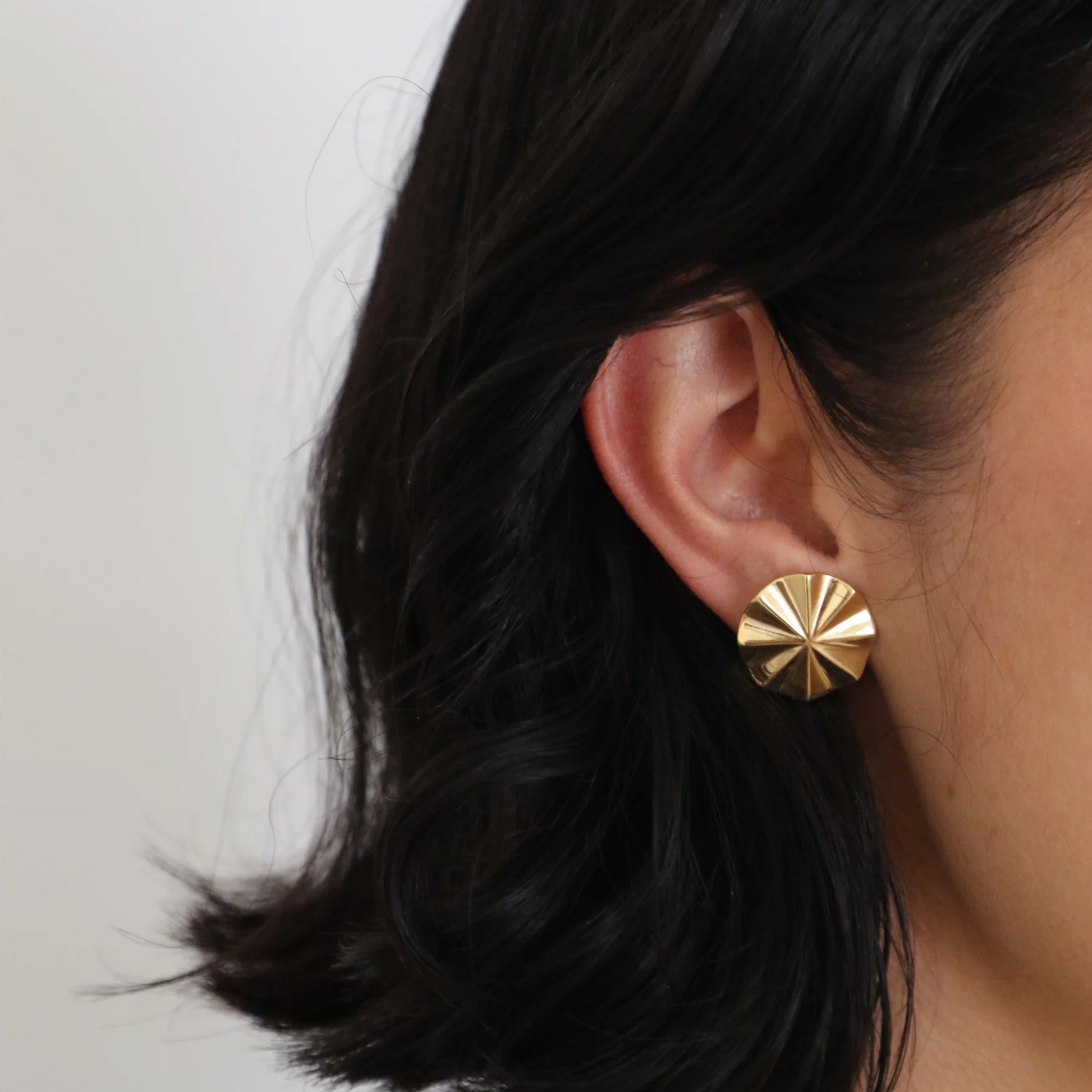 An abstract and modern medallion stud. Wear it with the Mila pendant for a matched set!