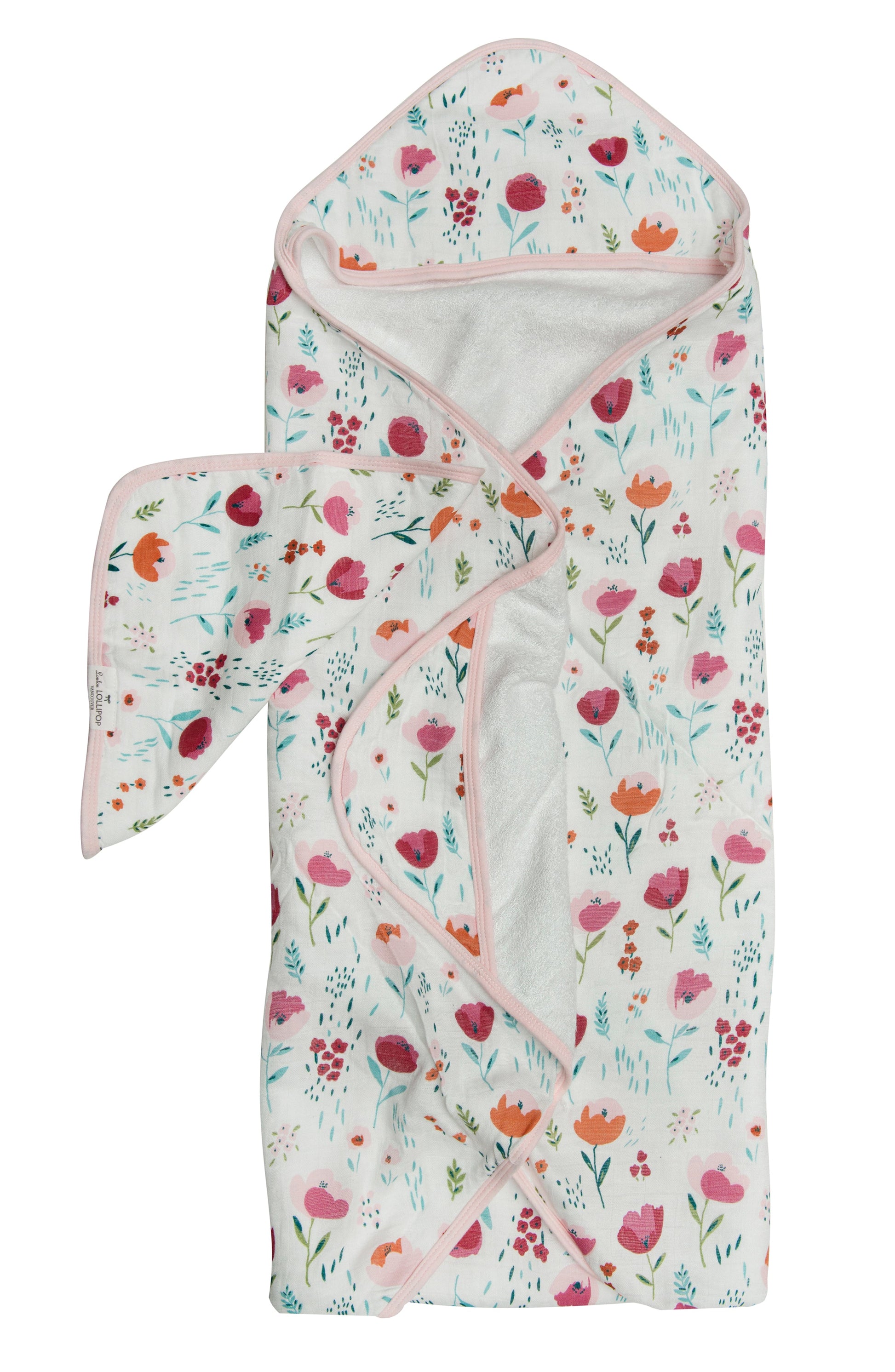 Hooded towel measures 32" x 32", and washcloth measures 12" x 12". Comes packaged in an attractive Loulou Lollipop box, ready for gifting!
