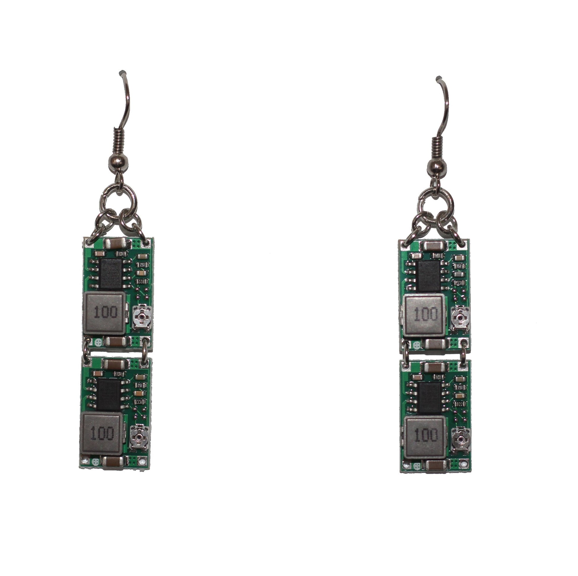 Named for Kipling subway station right here in Toronto, these earrings feature green tones and upcycled circuit boards.