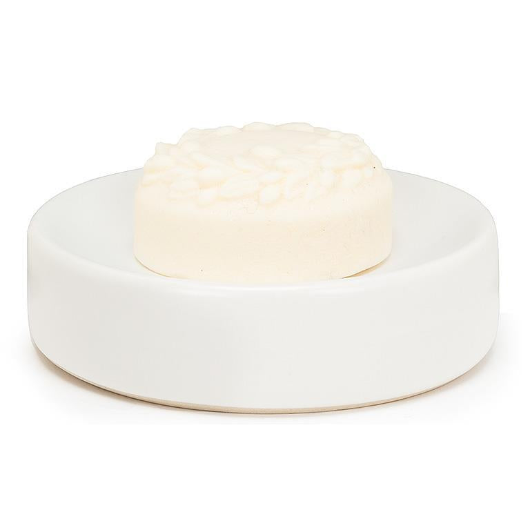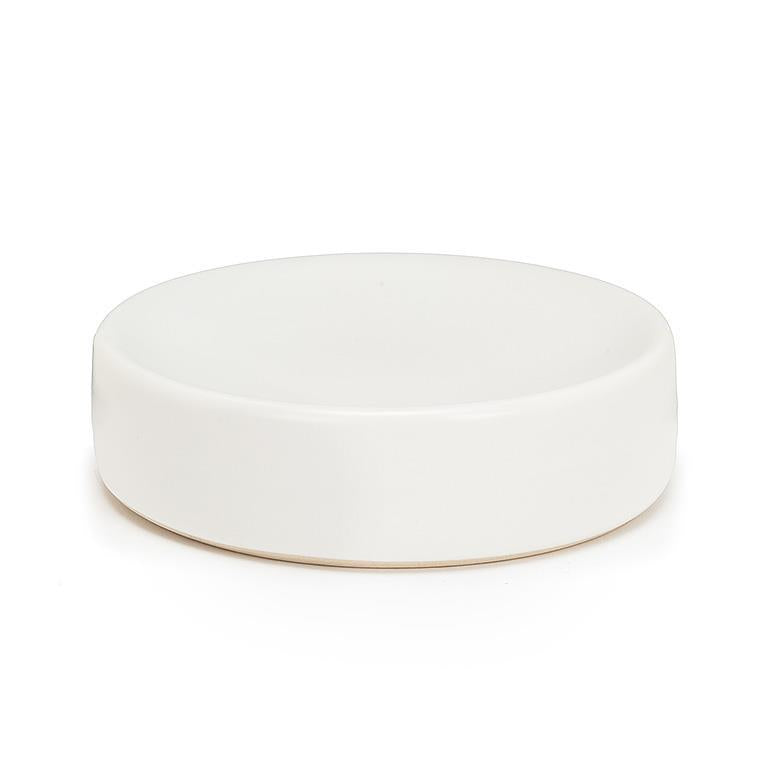 Add some contemporary style to your bathroom with this elegant Matte Round Soap Dish. Crafted out of stoneware, this elegantly simple matte white round soap dish makes a charming complement to anywhere you wash up, from the kitchen to the powder room.