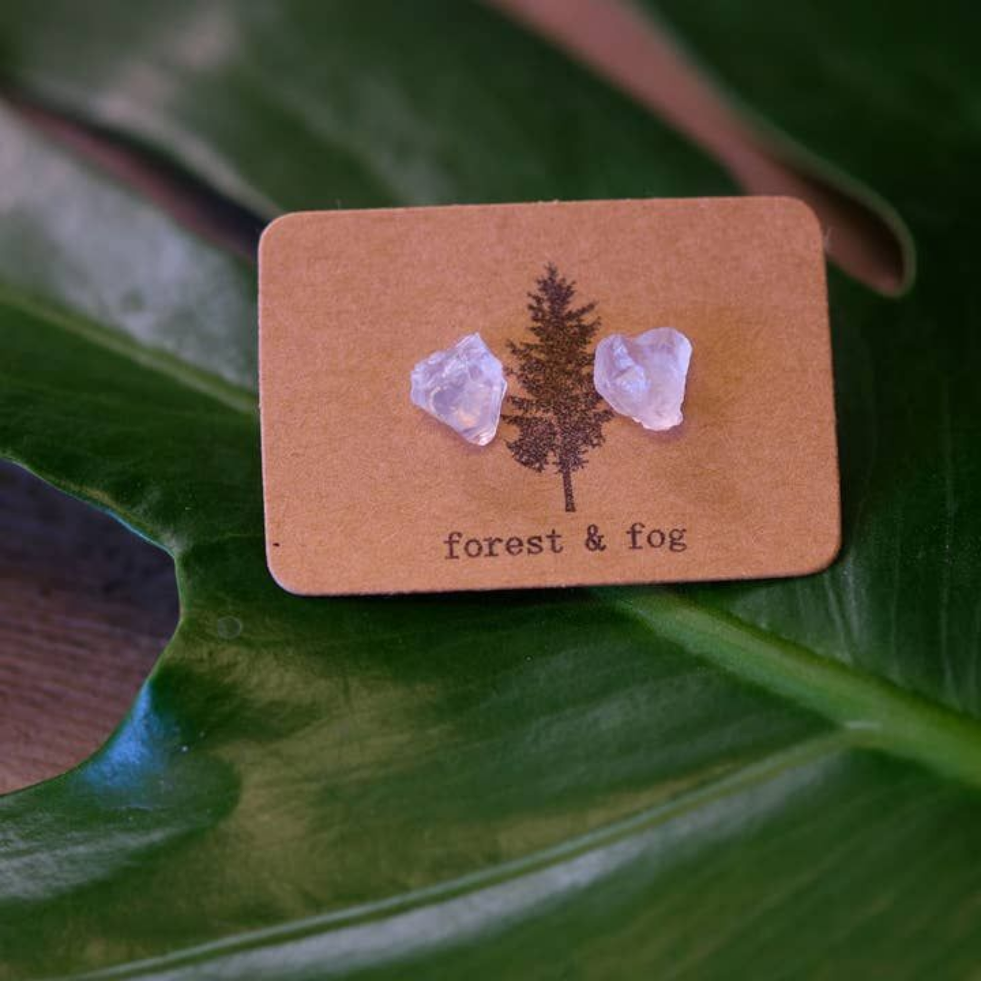Raw Rose Quartz studs on hypoallergenic sterling silver posts. Each stud is unique and hand matched to it’s perfectly imperfect pair.