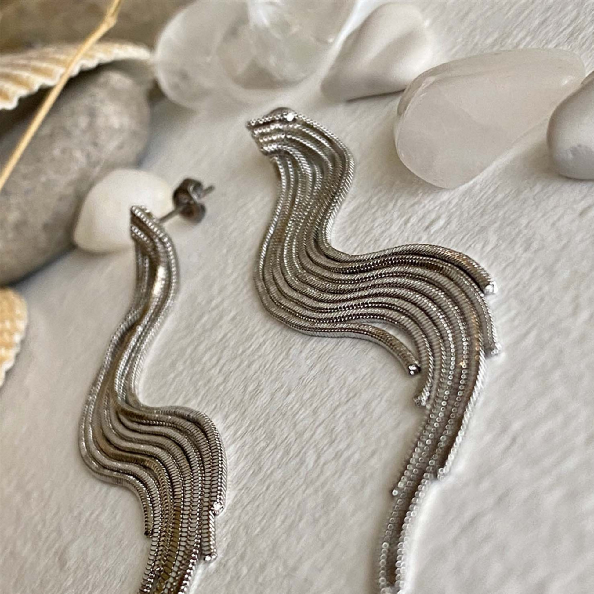 It's like a flapper dress, but earrings! These long cascading chains have an elongating effect to lengthen the look of your neck.