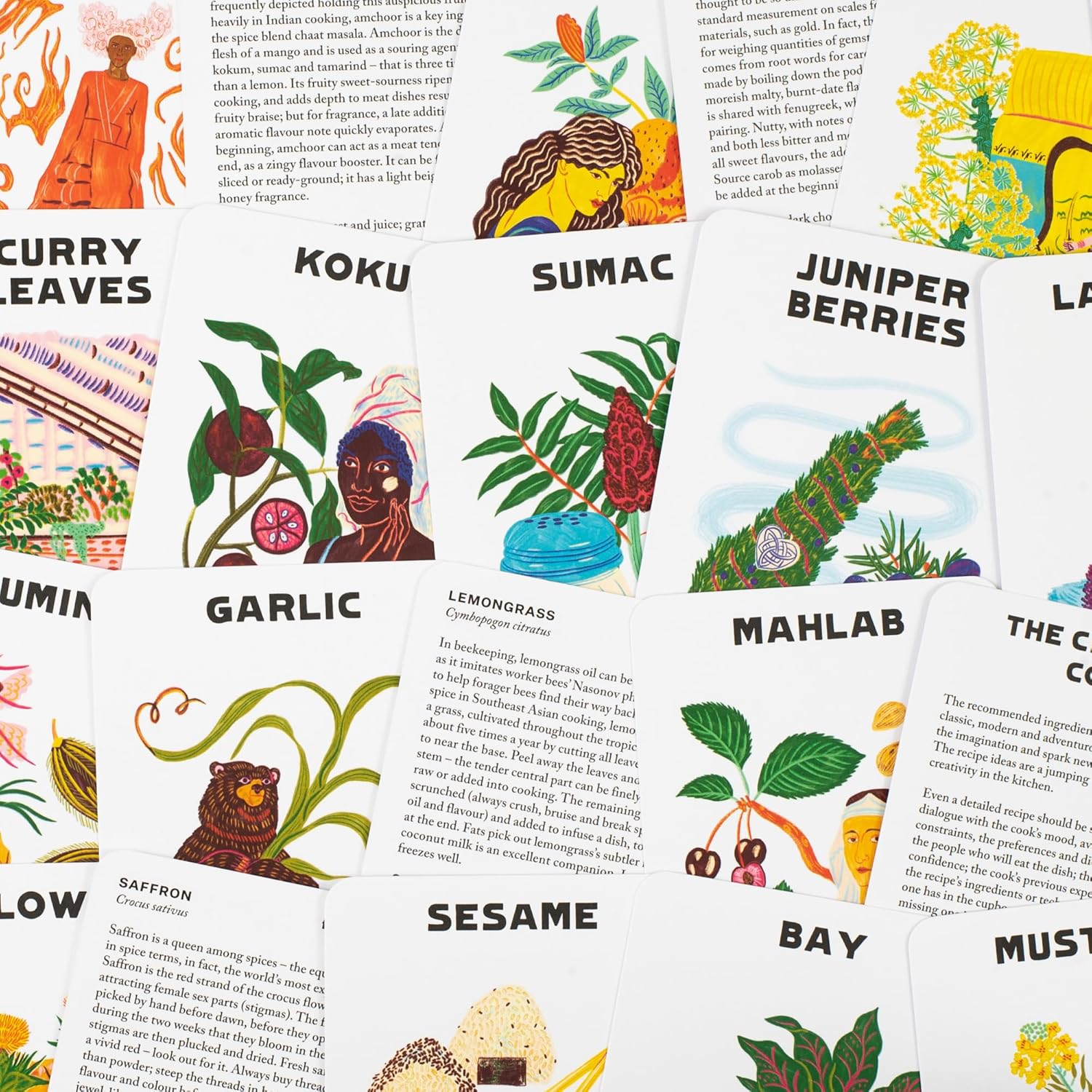60 beautifully illustrated cards with ingredient pairings, cooking tips, original recipe ideas and fascinating facts about each spice from acclaimed chef Emily Dobbs. Organized into six categories - aromatic, citrus, earthy, sweet, hot and pungent - and served in a stunning tabbed archive box, The Spice Box is the essential kitchen companion.
