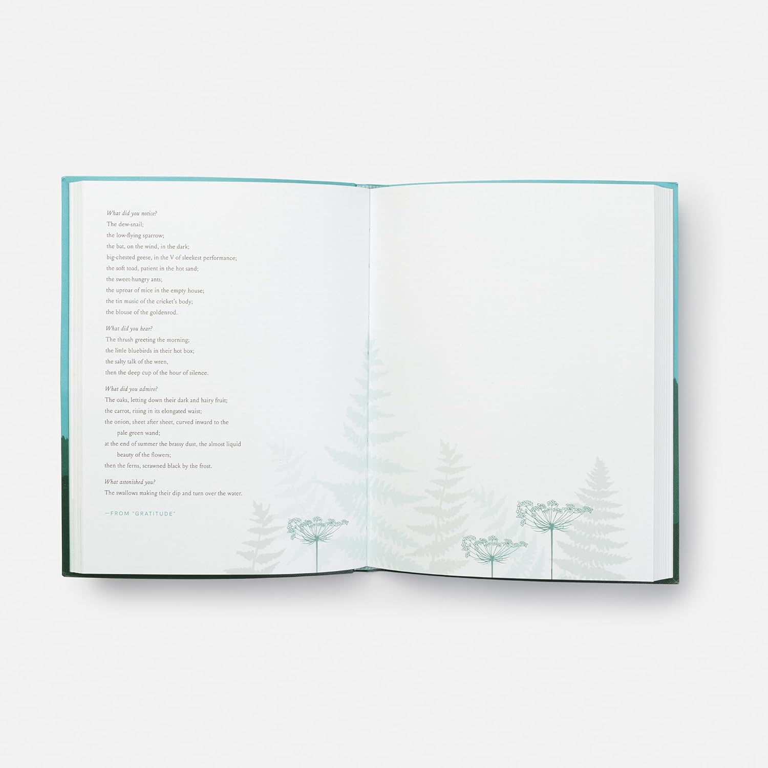 Oliver is a perennial touchstone for writers and nature lovers. Here for the first time is a journal that invites you to actively engage with her poetry. Flip from page to page to find a comforting, inspiring, or challenging quote from one of her poems, with an occasional poem reprinted in its entirety. The questions that weave through her poems form natural journaling prompts—from “The Gardener,”for example: Have I lived enough? Have I loved enough? Or from “Gratitude”: What did you notice? What was most wonderful? A list of citations for the quotes included in the back offers journalers the ability to delve deeper into Oliver’s work.