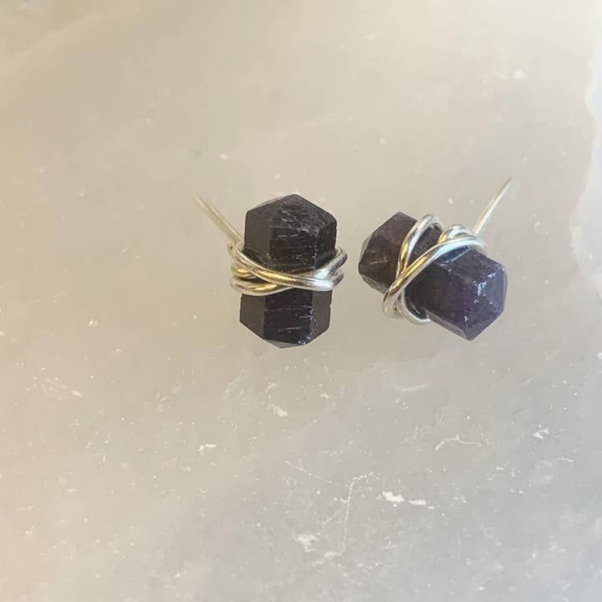 Double terminated Sapphire hand wrapped with Sterling Silver wire.